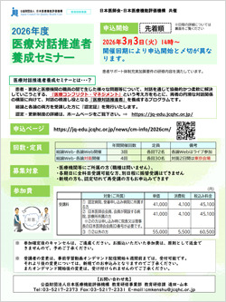 2026年度医療対話推進者養成セミナー申し込みのご案内(日本医師会・日本医療機能評価機構 共催)(先着順)