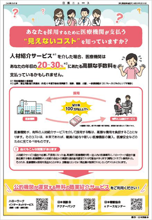 本リーフレットは、有料の人材紹介サービスを通じて採用した場合に、医療機関が支払う紹介手数料負担について知っていただくことを目的として作成したものです。