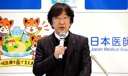 日本医師会では、国の政策やさまざまな問題・事象に対する見解や、新たな行動指針・活動計画・成果報告などを紹介するため、役員が報道各社に対して定例記者会見を行っています。